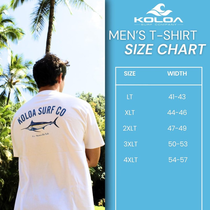 • Koloa Surf t shirts offer men the throwback t shirts that they remember and love from the days when they wore vintage t shirts and surf tees while dreaming of the ocean. Those days don’t have to be behind you. Check out the Koloa surf shirt and find what is sure to become one of your new favorite surf tees. Koloa carries classic t shirts and vintage graphic tees in a broad assortment of colors and designs.