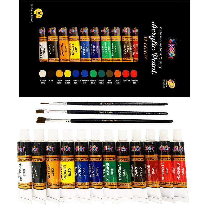 - EVERYTHING YOU ARE LOOKING FOR IN AN ACRYLIC PAINT SET Plus OUR INDUSTRY LEADING 'LOVE IT OR 100% of YOUR MONEY BACK' GUARANTEE: When shopping for artist supplies you should always buy with confidence because Kolor Kingdom offers you a no hassle returns