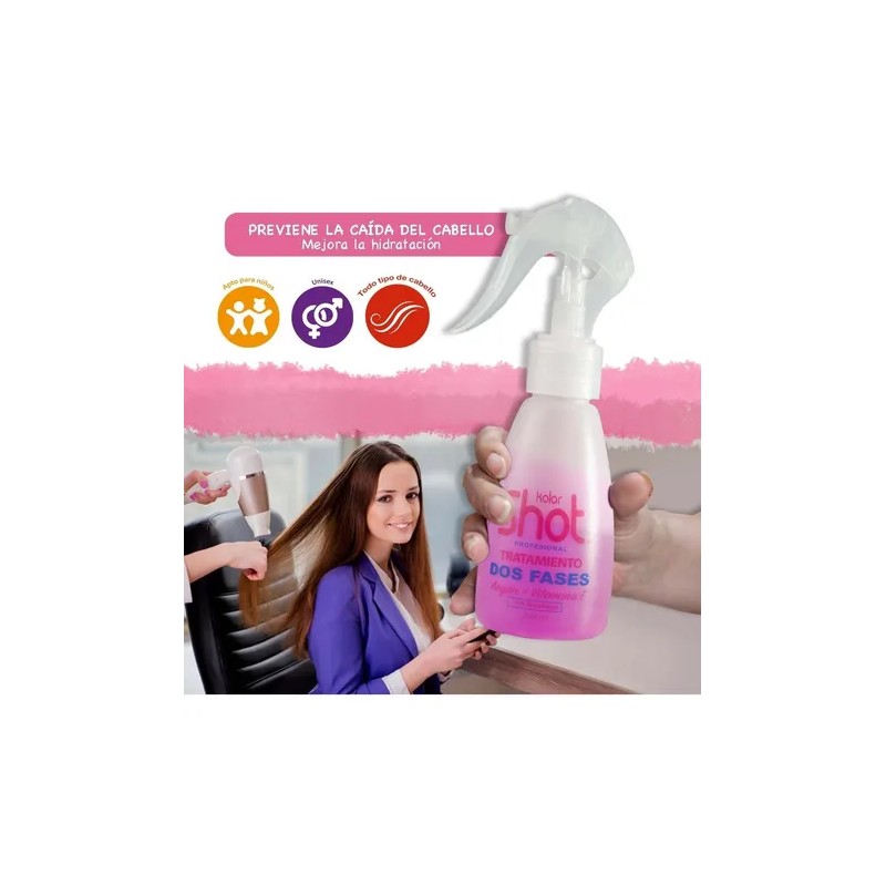 Tratamiento Hidratante 2 Fases Kolor Shot Argán + Vitamina E – Hidrata y Regenera Desde Raíz a Punta, Controla Frizz, Da Brillo y Suavidad sin Residuo Graso, Ideal para Cabello Sano y Brillante (206 caracteres)