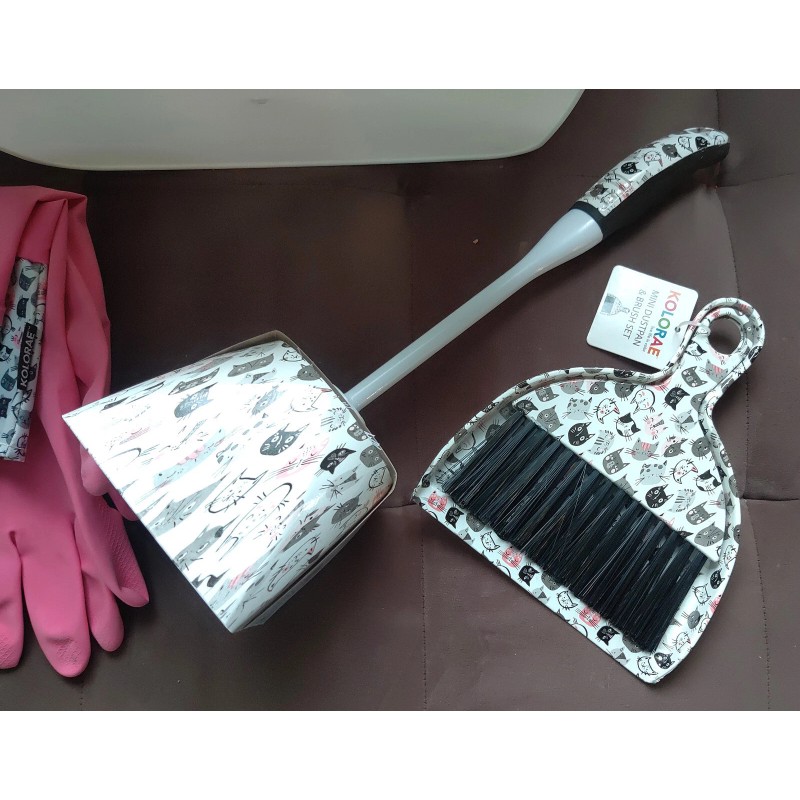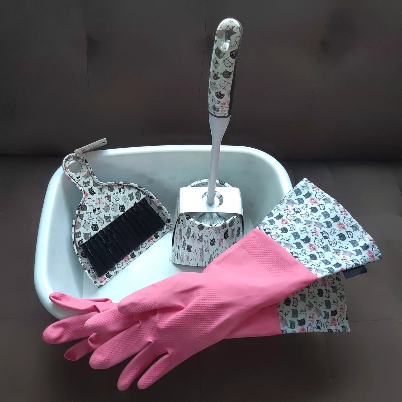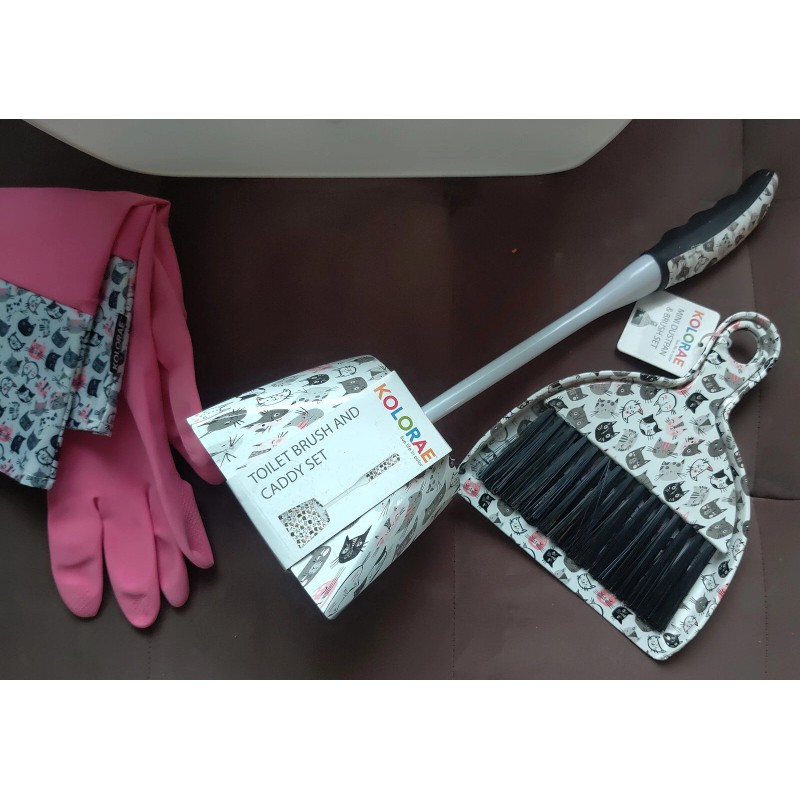 KOLORAE CAT KITTIES WASH BASIN TOILET BRUSH & CADDY GLOVES DUSTPAN & BRUSH SET