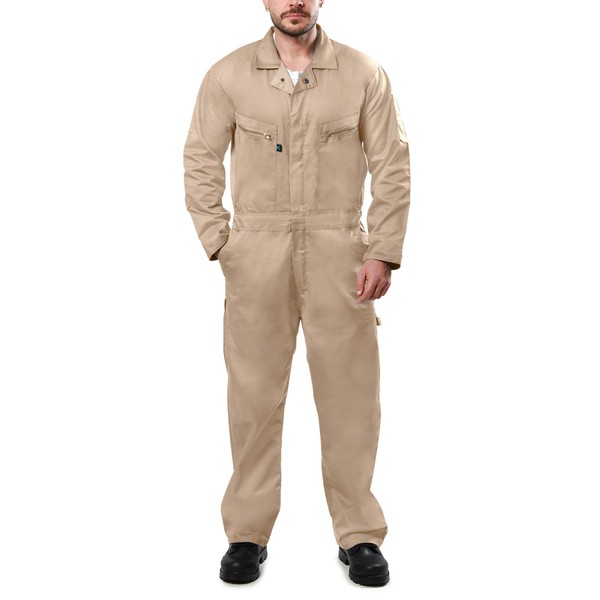 Kolossus Mens Long Sleeve Blended Coverall APPAREL with Zippered Frontal Pockets Khaki, Medium