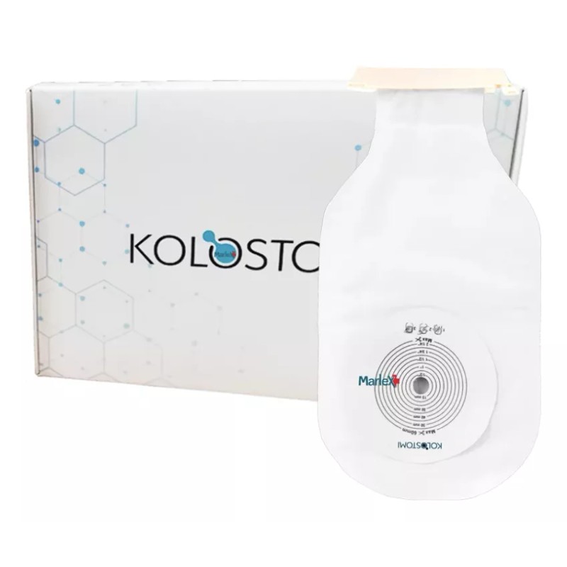 CONTENIDO: Caja con 10 unidades de bolsas para colostomía para adultos.