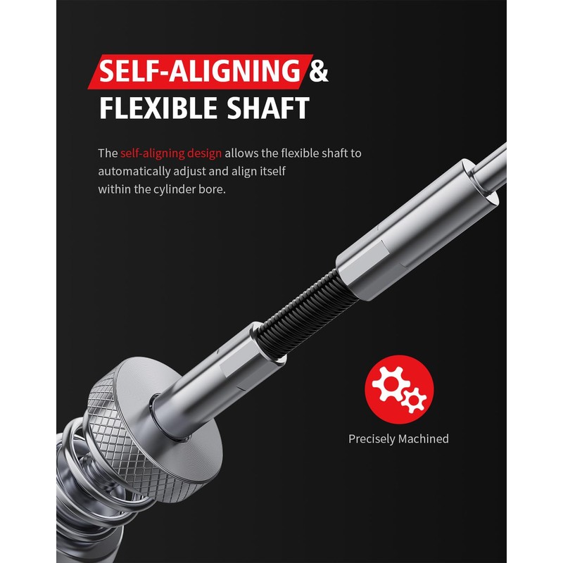 - EASY-TO-USE The self-aligning design allows the flexible shaft to automatically adjust and align itself within the cylinder bore, By turning the screw clockwise or counterclockwise, the user can increase or decrease the tension of the spring-loaded arms that hold the honing stones. allows the user to adjust the honing force according to the different piston diameters and the desired surface finish.