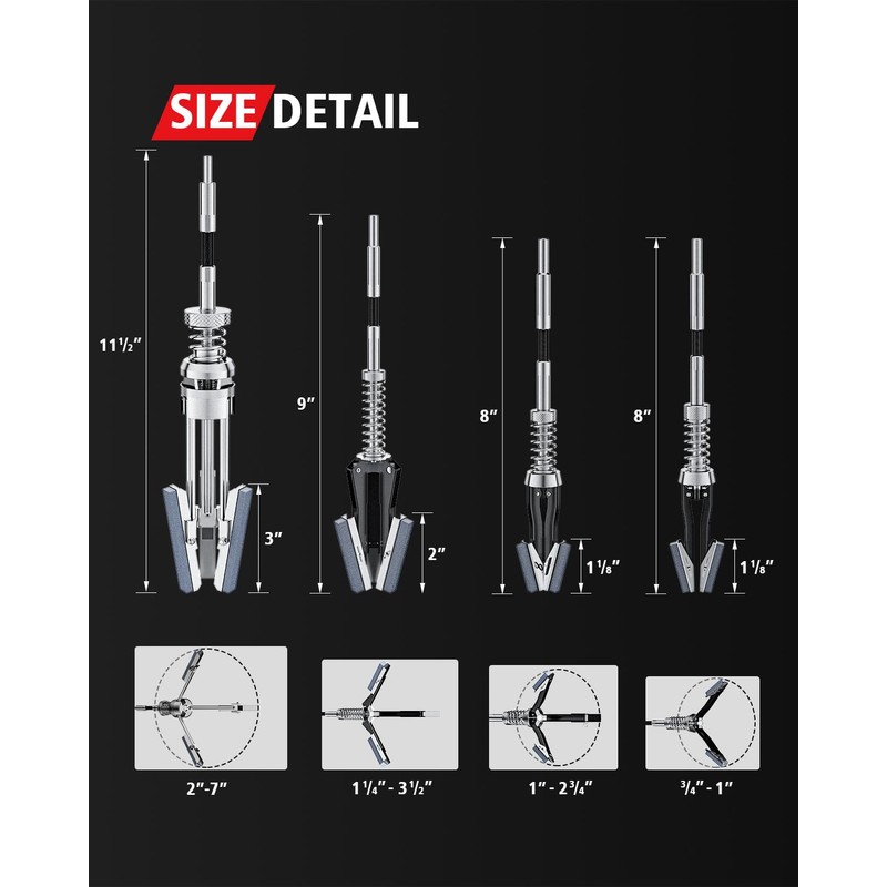 - SET SPECIFICATION The set includes:1pc 1-1/8" hone with 2 claws,1pc 1-1/8" hone with 3 claws, 1pc 2" hone with 3 claws, and 1pc 3" hone with 3 claws. Extra replacement honing stones: 3 pcs 4" grind stones, 3 pcs 2" grind stones, 5 pcs 1-1/8" grind stones, usage instructions and a storage case.