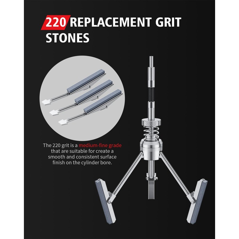 - PROFESSIONAL KIT Our Engine Cylinder Hone Tool Set includes 4 different-sized hone tools, for precise honing in hard-to-reach areas, ensuring comprehensive engine maintenance. It works on all vehicles with cylinders between 3/4" and 7" diameters. It comes with extra 11 piece replacement honing stones in 220 grit, available adds convenience and reliability to your cylinder hone tool.