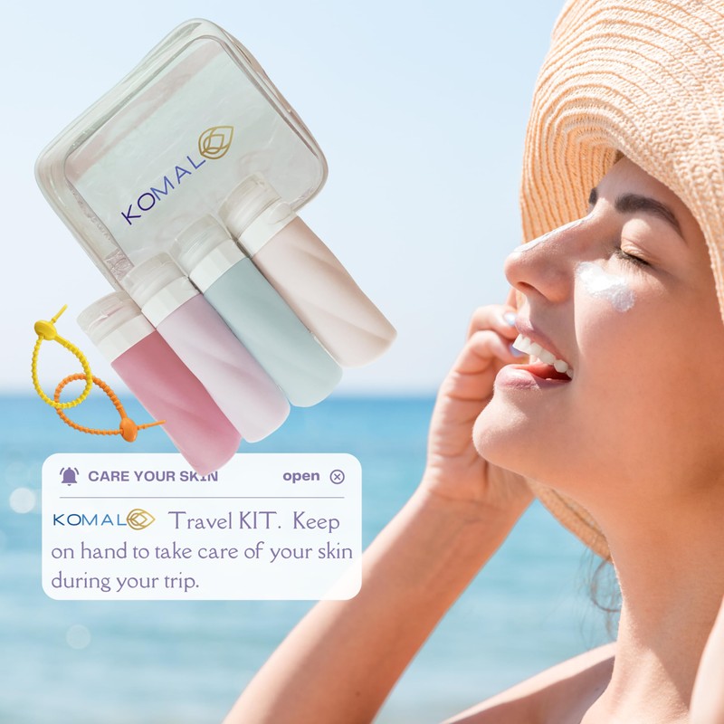 - SUITABLE TRAVEL ACCESSORIES: This KOMAL kit includes 4 travel size refillable silicone squeeze bottles. Everything you need for your personal care is at hand in the shower or to look great on your next vacation or business trip.