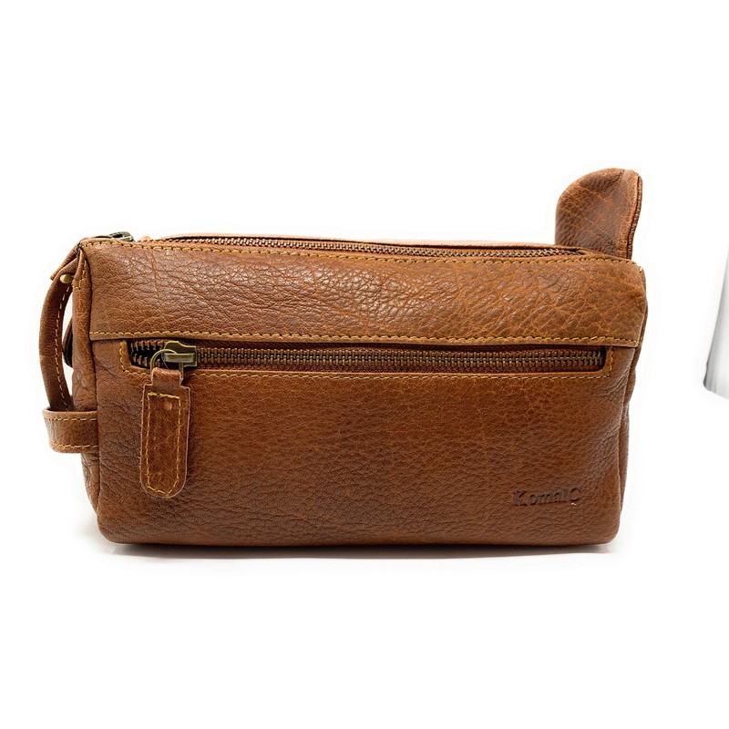 KOMALC Premium Buffalo Leather Unisex Toiletry Bag Travel Dopp Kit (Chicago Buff)