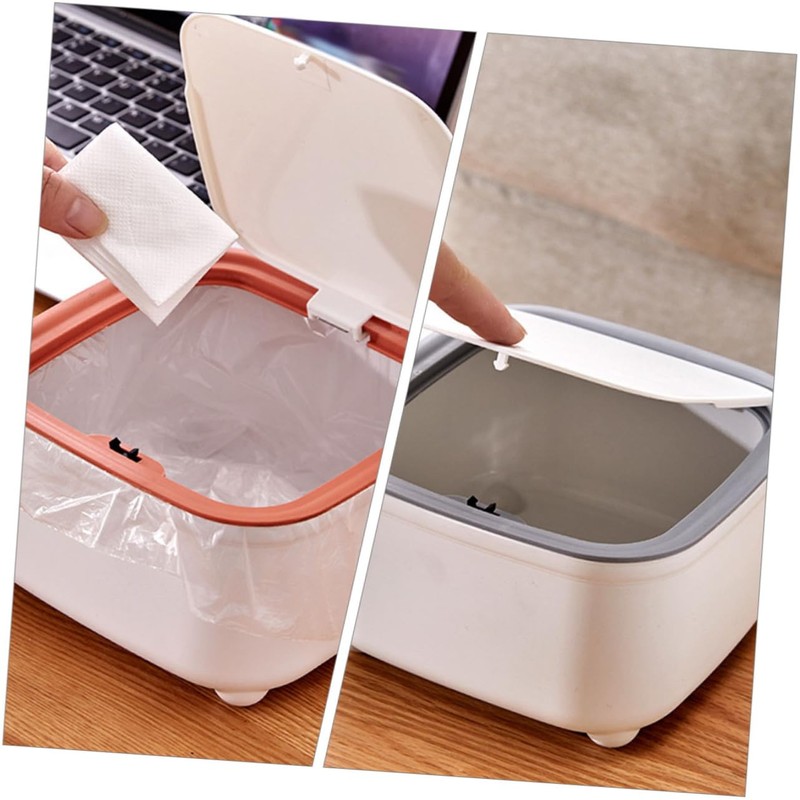 KOMBIUDA 2Pcs Convenient Desktop Trash Bin with Lid Creative Rubbish Can for Home Office Garbage Can for Papers Tissues and More Stylish Grey Design