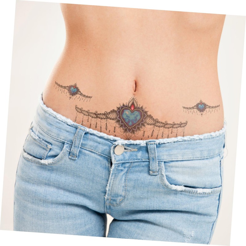 KOMBIUDA 4pcs Unique Pattern Temporary Tattoo Stickers for Women Realistic Belly and Chest Decals Diy Body Art for Beach Pool and Parties Easy to Apply and Remove