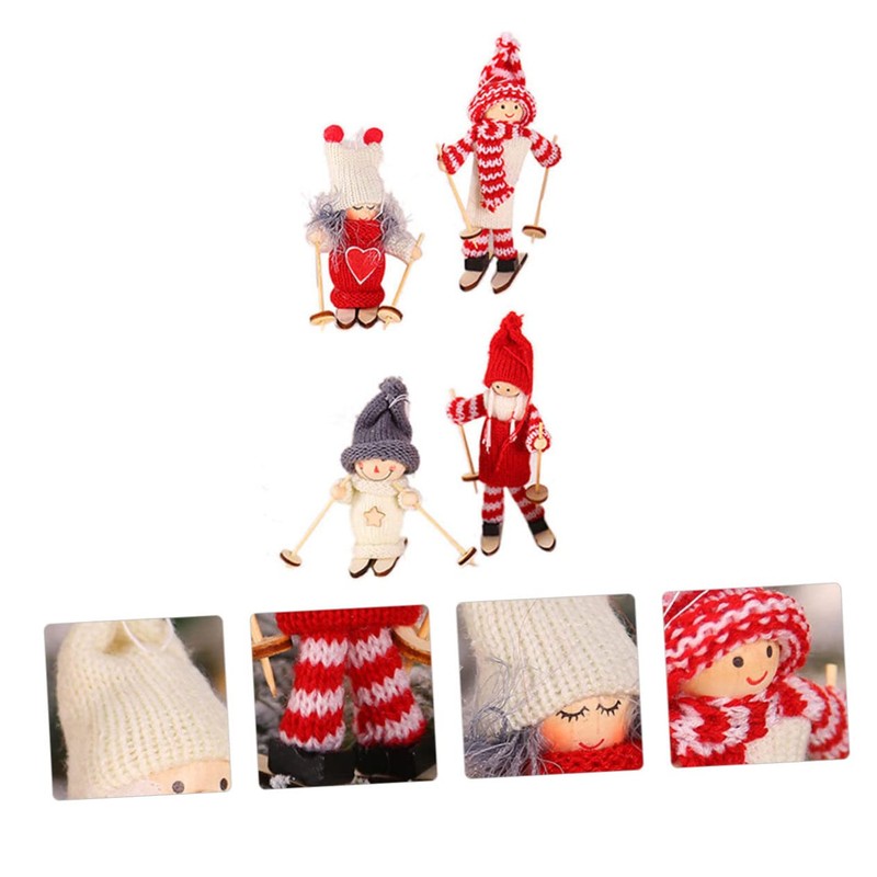 KOMBIUDA Mini Toys Xmas Decorations 4 Pack Ski Doll Decorations for Holiday Tabletop Adornment