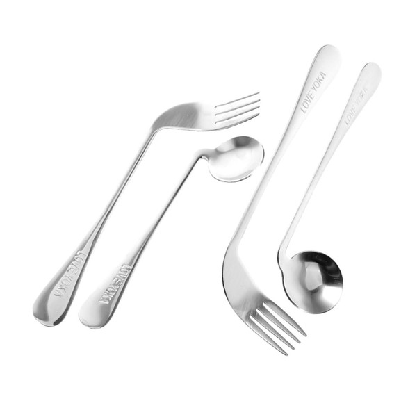 feeding angled spoon The smooth and special shape make it effortless to use and hold.angled assist tableware Stainless steel material can be used for a long time, no deformation, fall resistant, can be used for a longer time.aid spoon This is very safe for old people.practical spoon The edges of the spoon fork will not damage their suppleness and tender gums