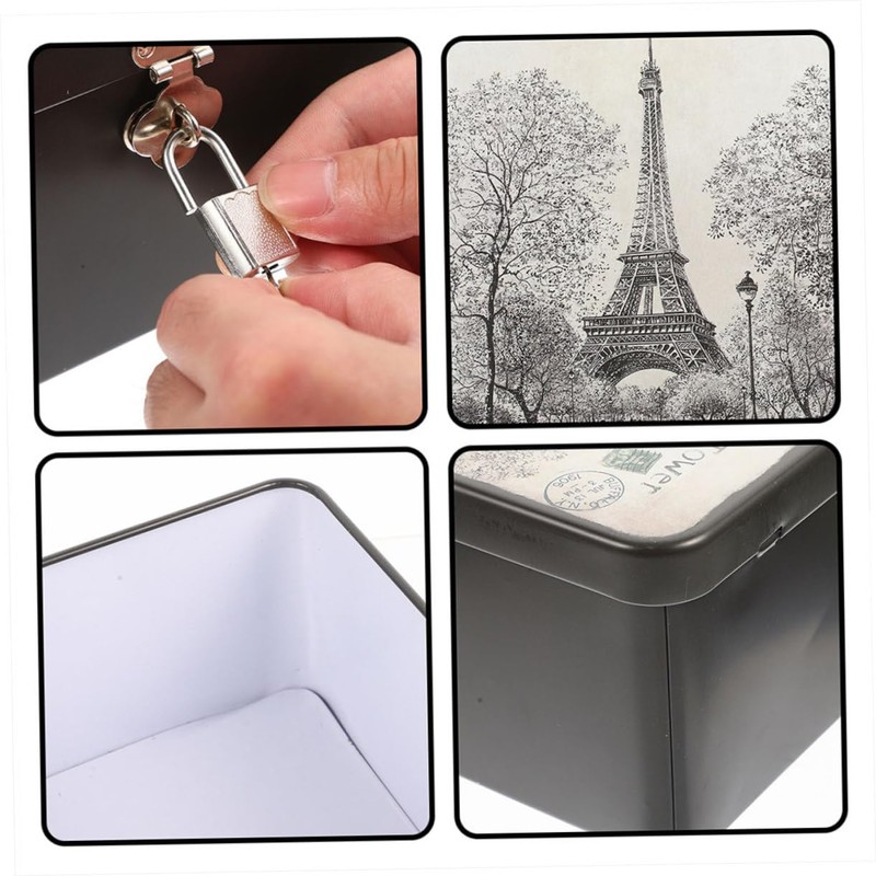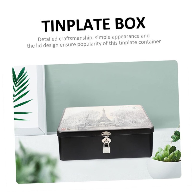 KOMBIUDA Storage Box with Lock Tinplate Metal Box