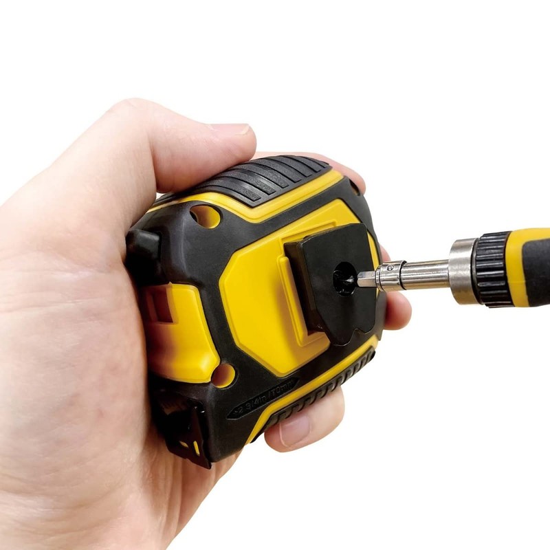 - Universal Fitting - Fits any tape measure fitted with a screw on spring loaded belt clip.