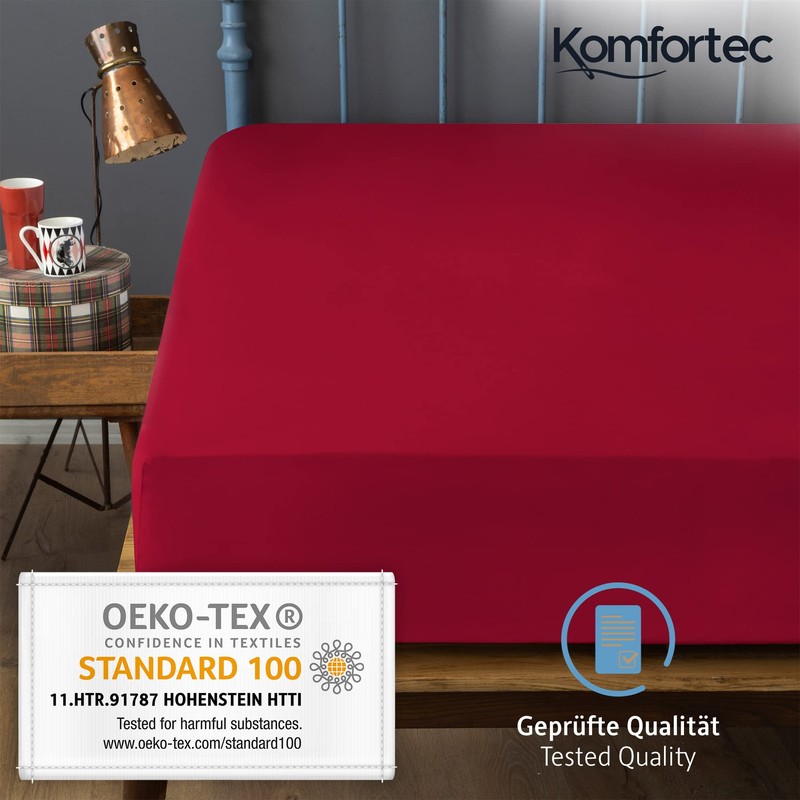 Komfortec Jersey Fitted Sheet 140 x 200 cm, 100% Cotton, Red