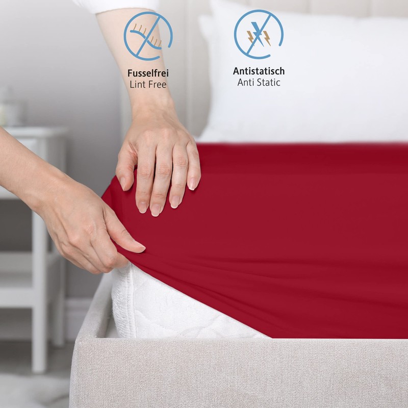 Komfortec King Size Fitted Sheet 100% Cotton, 11 inch (30 cm) Deep Pocket - Red