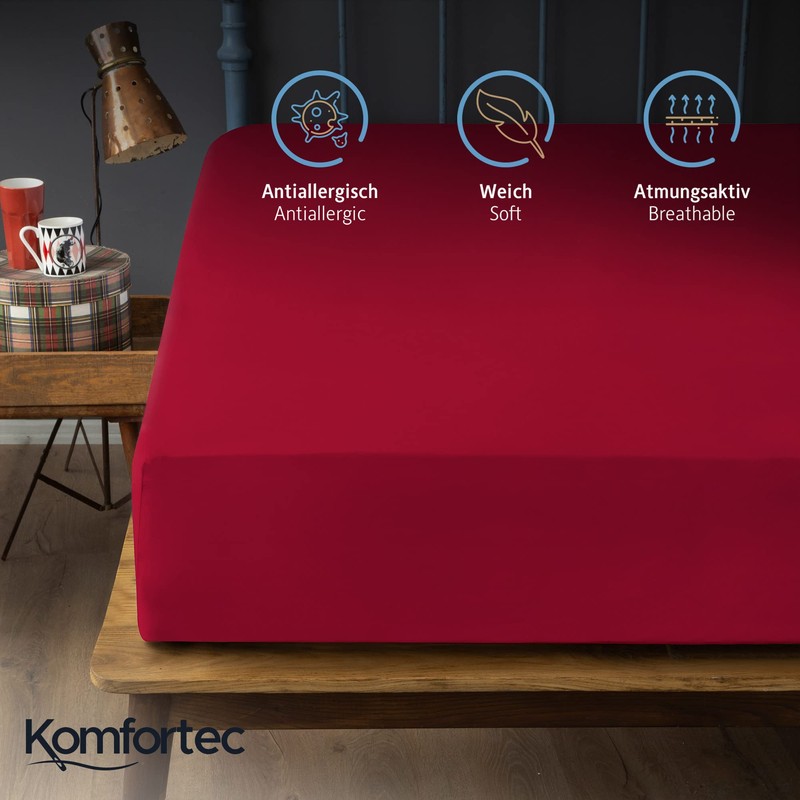 - Crafted from 100% brushed microfiber (90 g/m²), the Komfortec fitted sheet offers an ultra soft, breathable and allergy-friendly sleeping experience - ideal for sensitive skin and all seasons.