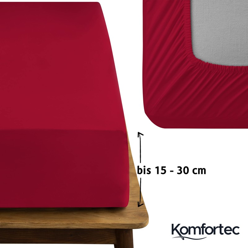 Komfortec Microfibre Fitted Sheet 180 x 200 cm, Soft Fitted Sheet with Elasticated Edge, Fitted Sheet for Mattresses up to 30 cm, Red, Oeko-Tex, Easy Care and Skin-Friendly, 90 g/m²