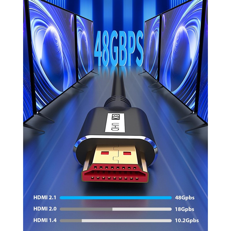 - 【 Enhance Viewing Experience 】 The 8K HDMI cable enhances your viewing experience through advanced technologies such as SBTM, Variable Refresh Rate (VRR), Quick Media Switching (QMS), and Automatic Low Latency Mode (ALLM). Say goodbye to screen tearing and lagging.