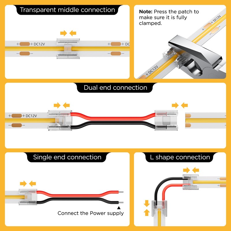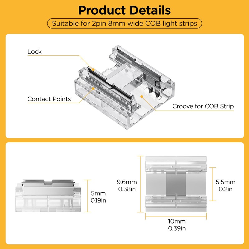 • Easy to install: no soldering required. Just use directly! This COB connector kit makes DIY projects safer and simpler.