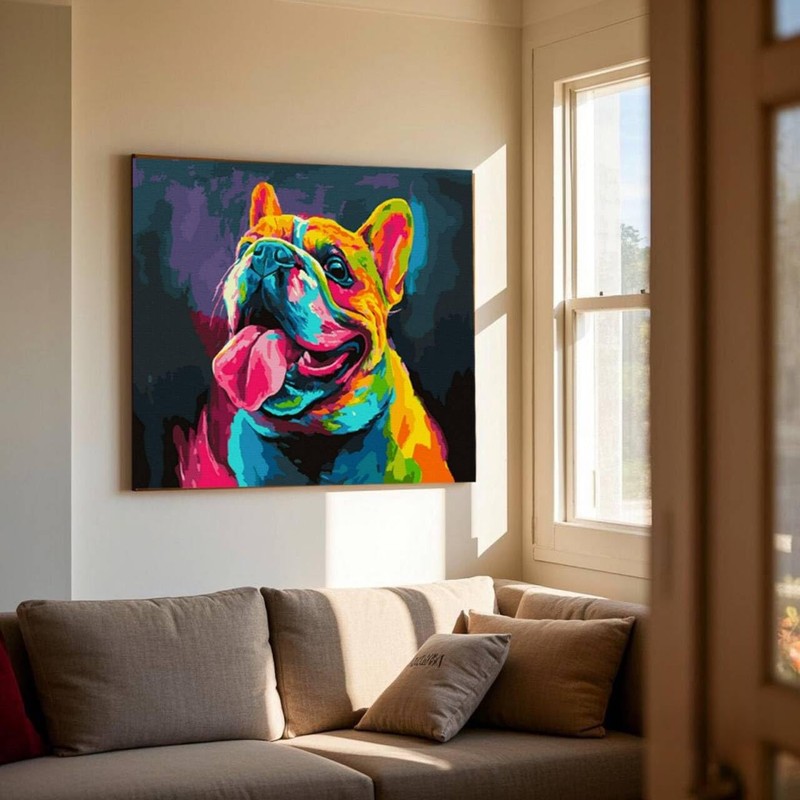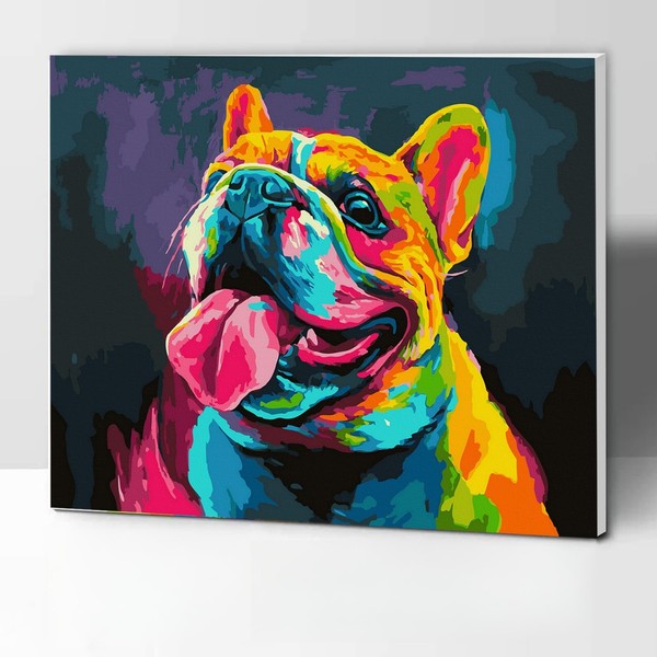 Komking Paint by Numbers Kit for Kids Adult Framed, Paint by Number Kits on Canvas Number Painting Kits Animal Theme, Color Bulldog 12x16inch