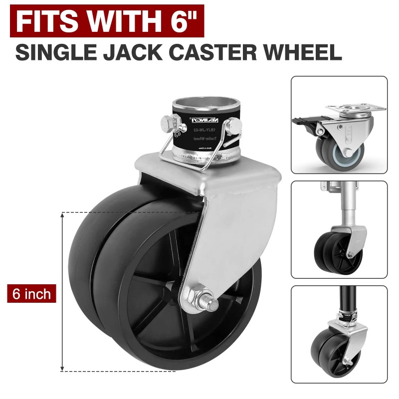 【Extend the Service Life of Jack Wheels】Place the Chock underneath your Jack Wheel to prevent damage from mud, sand, oil, and dirt. The drainage hole effectively prevents rainwater build-up and rust damage. With the jack wheel chock, your Jack Wheel will stay clean and its service life will be prolonged.