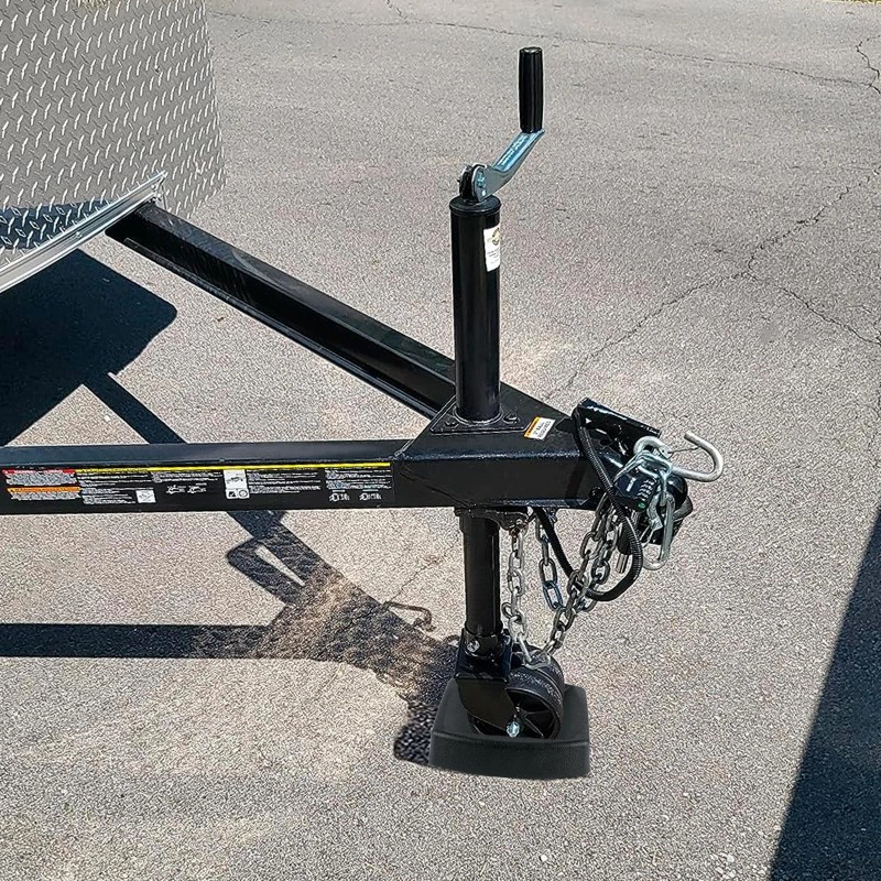 【Durable Wheel and Rubber Chock】Our Chock features a durable poly wheel and a heavy-duty rubber chock, providing long-lasting corrosion resistance and ensuring the stability and safety of your trailer.