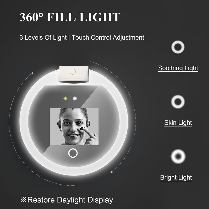 - SMART TOUCH-STEUERUNG UND EINSTELLBARE HELLIGKEIT: LED-Glühbirnen umgeben den Spiegel, Bildschirmtasten steuern die Helligkeit und UV-Kameraschalter. Die Helligkeit des Spiegels mit Lampe kann je nach Bedarf angepasst werden, um den zum Anlass passenden Make-up-Effekt zu erzielen.