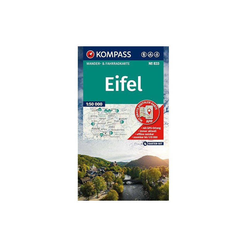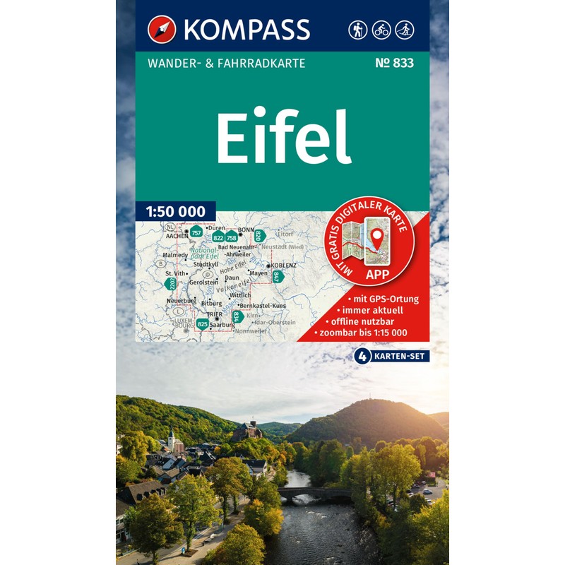 KOMPASS Wanderkarten-Set 833 Eifel (4 Karten) 1:50.000: Wander- und Fahrradkarte in einem - inklusive Offline-Verwendung in der KOMPASS-App. Wander-& Radwege. Langlaufen.