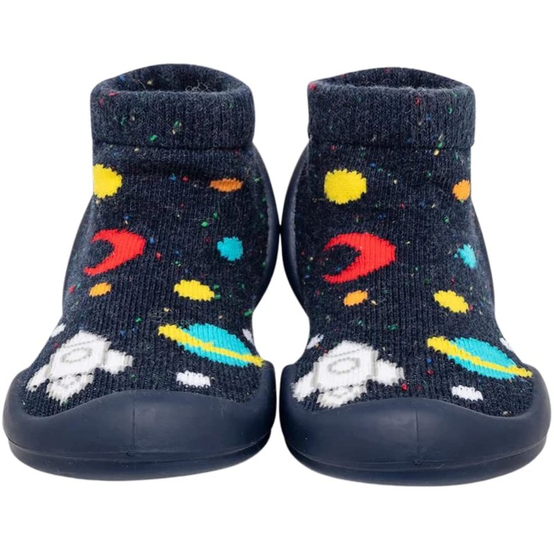 Komuello Boy Baby Toddler Pull Up First Walker Non Slip Soft Cotton Premium Sock Shoes Galaxy, Size 7 (135mm, 18-24 Months)