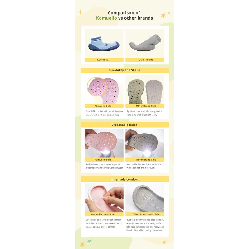 - Stay-On Comfort: Experience the perfect fit with Komuello's toddler sock shoes, designed with a cotton top that wraps comfortably around little feet. Our superior elasticity ensures they stay on securely, making them easy to put on and take off.