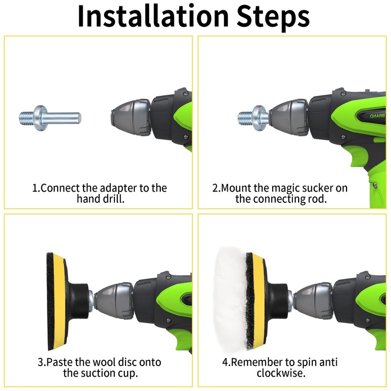 - 【Easy to Use】Self-adhesive installation, strong self-adhesive, you can change the drill polishing kit just in seconds, for easy removal and re-used, eliminates swirls and other defects with ease.
