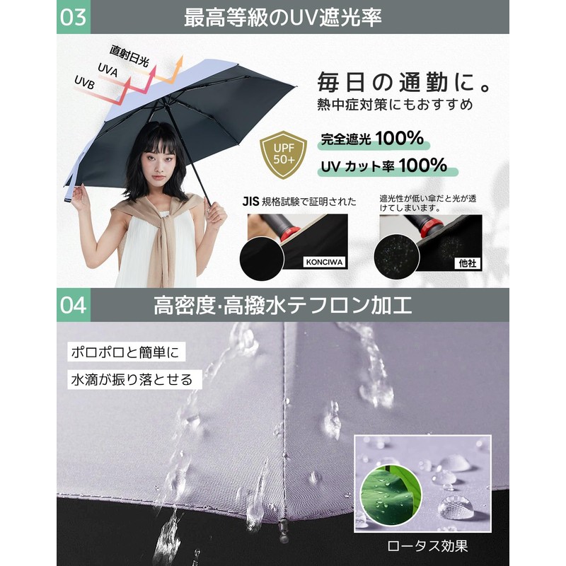 konciwa Parasol, 100% Shading Rate, 100% UV Protection, UPF50+, Heat Shield, Sun or Rain, Automatic Opening/Closing, 6.9 oz (199 g), Lightweight, Women's, Compact, Windproof, Durable, Portable, Ultra