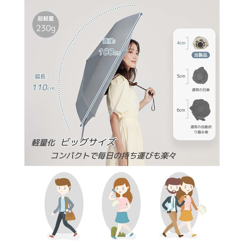 - (Compact, Ultra Lightweight, Big Size, Sturdy) The konciwa folding umbrella is made of state-of-the-art lightweight and durable fiberglass and aluminum alloy ribs, making it lightweight, compact and sturdy. The diameter when open is 39.4 inches (100 cm), and the thickness is only 1.4 inches (3.5 cm), and the ultra-compact design can be stored in your pocket. In addition, the weight of about 8.1 oz (230 g), is very light and perfect for everyday carrying! It can be used for a wide range of occasions such as commuting to work or school, traveling, hiking, sports, and is suitable for people of all ages, regardless of age and age