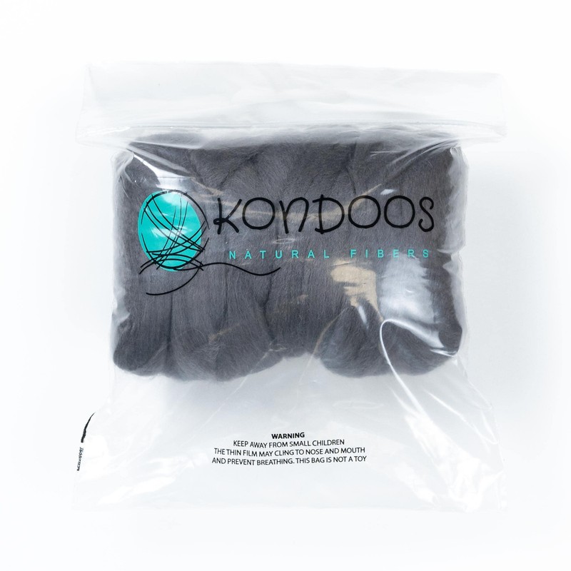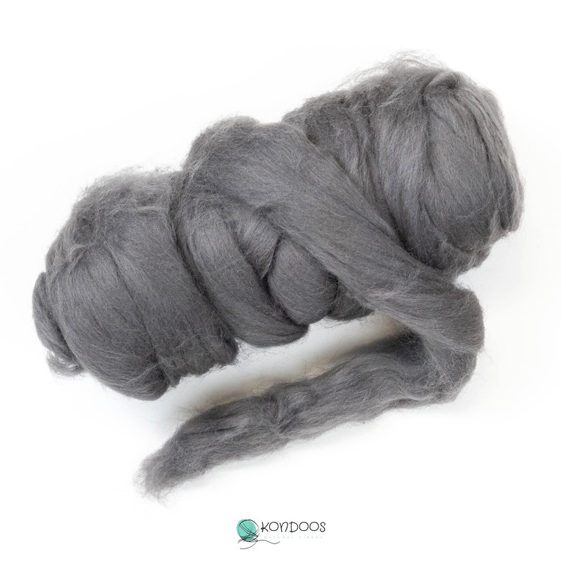 Kondoos Colored Natural Wool roving, 8 OZ. Best Wool for Needle Felting, Wet Felting, handcrafts and Spinning. (Graphite)