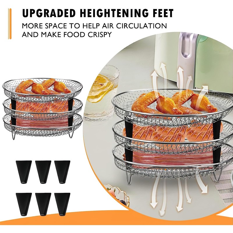 Konesky 3-lagiges Luftfritteusen-Gestell, Edelstahl-Airfritteusenkorb, Zubehör für Luftfritteusen, stapelbar, Dehydrator-Racks für Ofen, Mikrowelle, Backen, Braten, Konesky6951