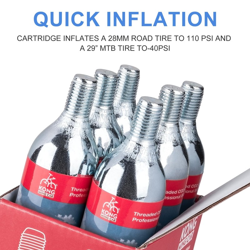 KONG MING CAR CO2 Cartridges with Thread, 16g/25g CO2 Cartridges with Thread Connection for All CO2 Bicycle Tyre Fillers, CO2 Pump for Road Bikes and Mountain Bikes