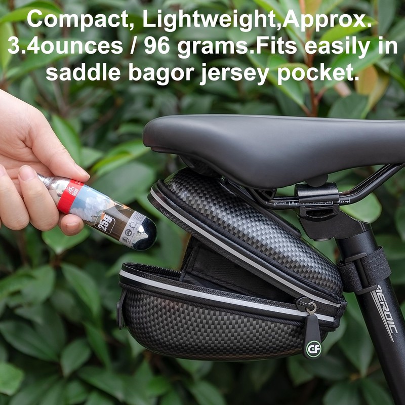 • SMALL & COMPACT – Conveniently fits in a saddle bag, jersey pocket, or backpack. Weighing only 58 grams, you won't even notice you're carrying one. Remember, it's a temporary solution, so use a pump to fully inflate your tire later.
