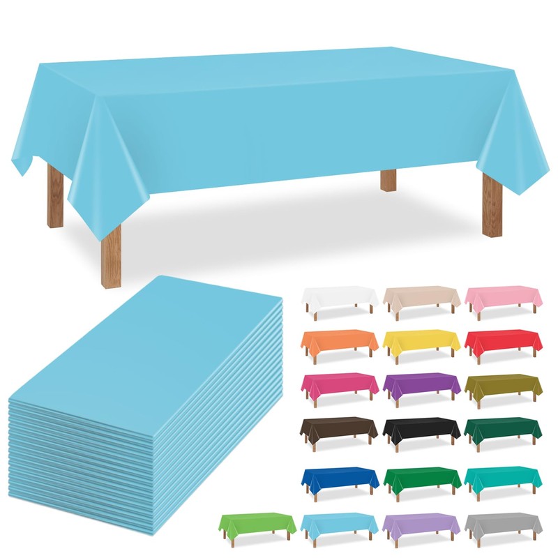 - Multiple Color Selection: When you want to host a variety of different types of themed parties, we have more than a dozen different colors of plastic tablecloths for you to choose from, adding to the atmosphere of the party.
