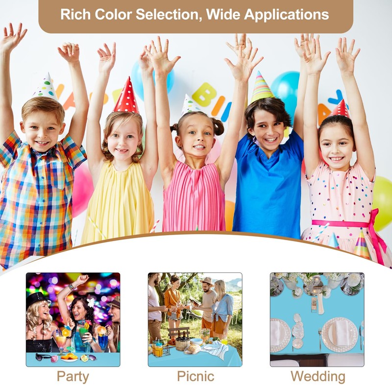 - Multiple Applications: 16 pack Plastic tablecloths for Multiple Parties can be widely used when you need to host weddings, picnics, and holiday celebrations, these plastic tablecloths can meet your needs.