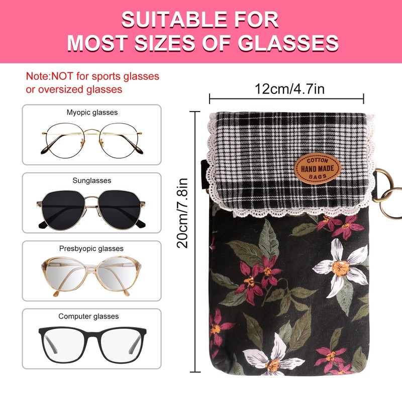 - 【Reasonable size design】7.5"L*4.5"W suitable for most sizes of glasses like sunglasses, presbyopic glasses, myopic glasses, and computer glasses, but not for sports glasses or oversized glasses. The glasses pouch is slim and lightweight, easy to carry and travel friendly. Comes with a soft cleaning cloth to clean your glasses.