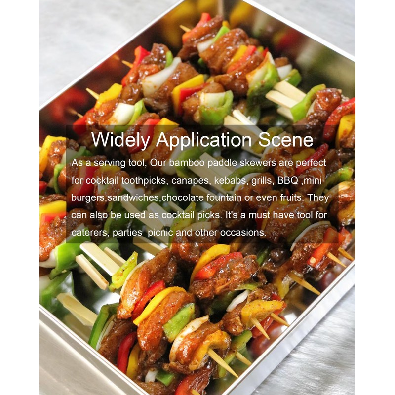 - Paddle Design - The flat wide handle design of paddle skewers makes it easy to flip over. And it is stable enough to hold food, and doesn't spin or fall off.