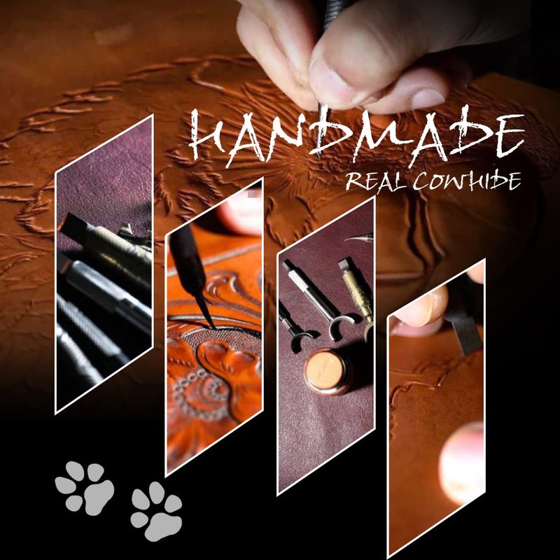 KONLLEN Leather Engraved Chalk Holder Bag Vegetable Tanned Leather Pool Cue Snooker Silent Billiard Accessories