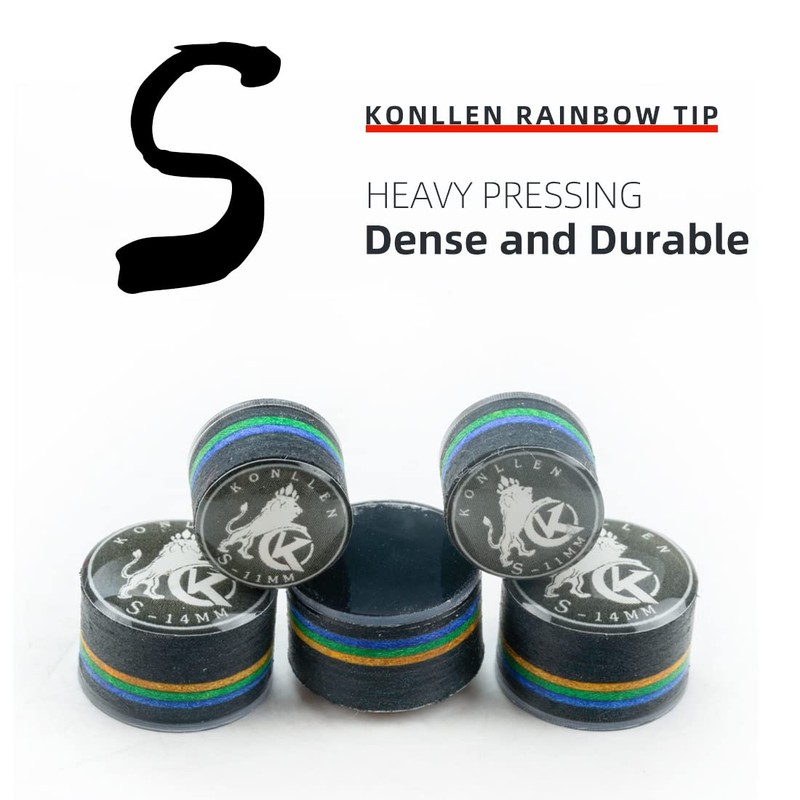 • 🎱Material: The newly upgraded KONLLEN pool cue tip is made of leather imported from Japan, which is more wear-resistant after being screened by an authoritative organization. In this way, 9 layers of leather are carefully selected to make a high-quality KONLLEN rainbow cue tip.