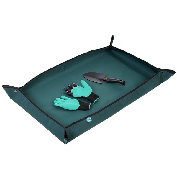 - Package Includes: 1 piece of large size 75.0x110.0cm/30''x44'' green foldable repotting mat, 1 gardening shovel in length of 17.7'', 1 pair of gardening glove with claws