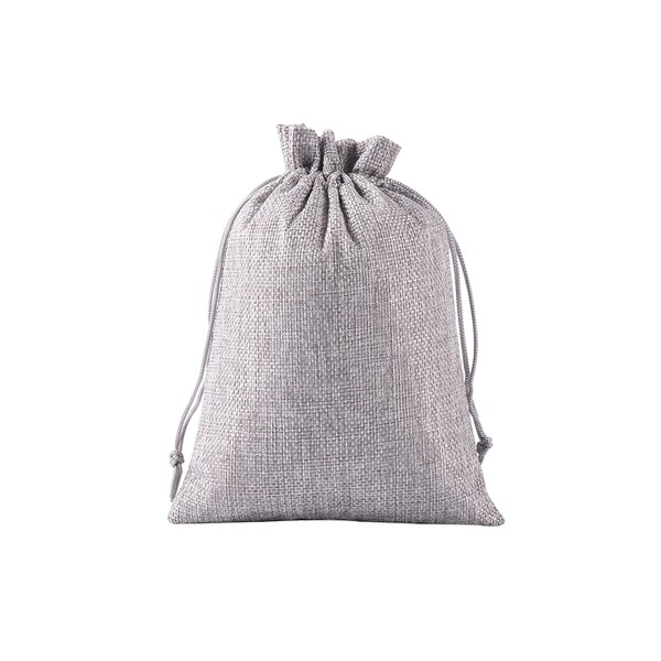 KONMAY Set of 10, 20 x 30 cm, grey jute bags, gift bags with drawstring, large jute bag, linen bag, hessian jewellery bag with drawstring for lavender flowers, jewellery, gifts