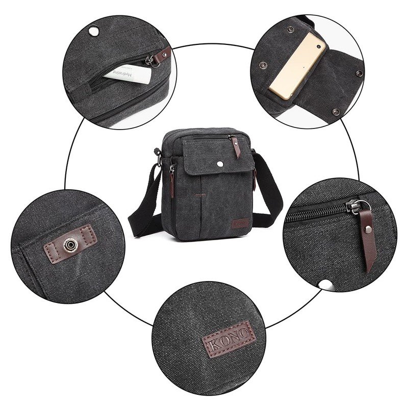Kono Man Bag Small Canvas Messenger Bag Men Shoulder Bags Travel Organizer Satchel Multi Pockets Sling Cross Body Bag