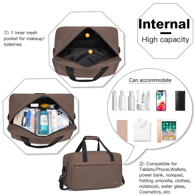 KONO Ryanair Travel Bag Hand Luggage Bag Unisex Gym Handbag Weekender, brown