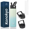 Konokyo Insulated Water Bottle with Straw,22 oz 3 Lids Metal Bottles Stainless Steel Water Flask,Mint