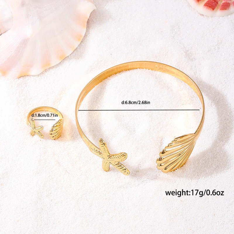 KONPJE Starfish Seashell Ring Arm Cuff 18k Gold Plated Starfish Shell Arm Bangle Adjustable Open Armlets Ring Summer Beach Ocean Jewelry Accessories for Women