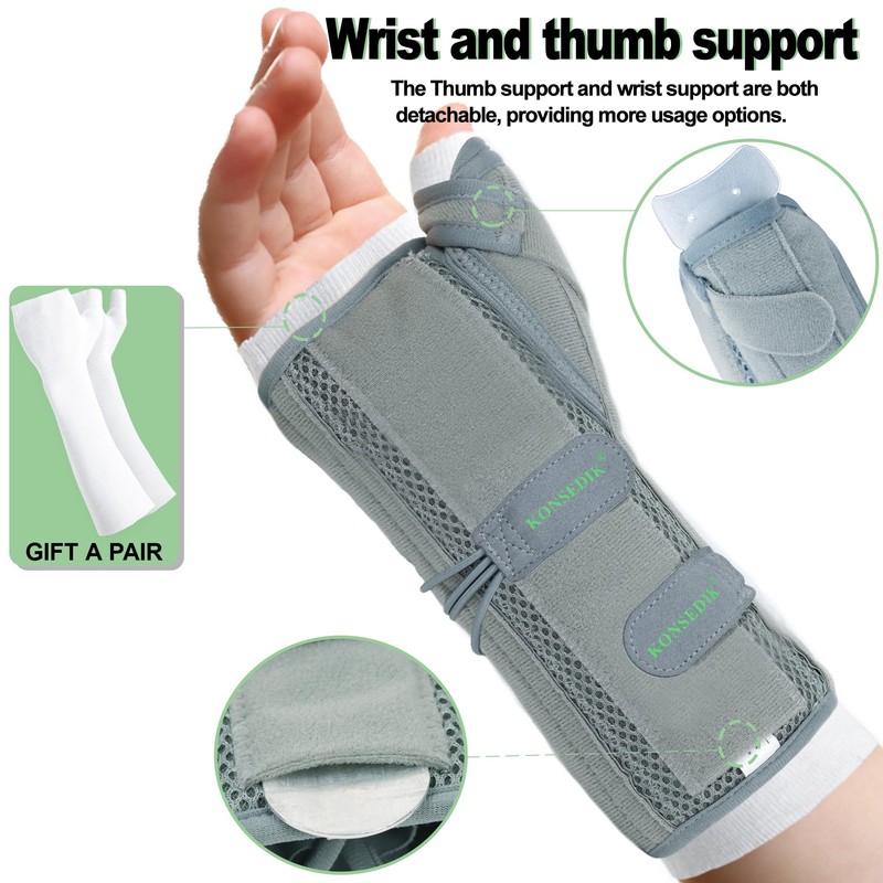 - 【EXCELLENT THUMB&WRIST SUPPORT】KONSEDIK Wrist Brace with Thumb Spica Splint applies uniform pressure on the wrist and first metacarpal joint,which provides ultimate pain relief from various ailments, including Tendinitis,Tendovaginitis,Sprains,Carpal Tunnel Syndrome (CTS), Arthritis of the wrist,instability the wrist,radial nerve palsy of hand,gamekeeper’s and mommy's thumb pain.Provides excellent support for thumb and wrist post-operative and post-removal of casting or splinting.